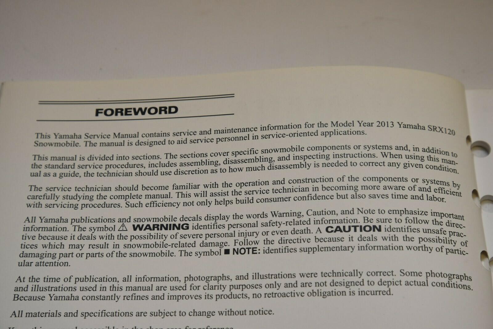 OEM Yamaha Snowmobile Service Shop Manual LIT-12618-03-04 SRX120 2013 13