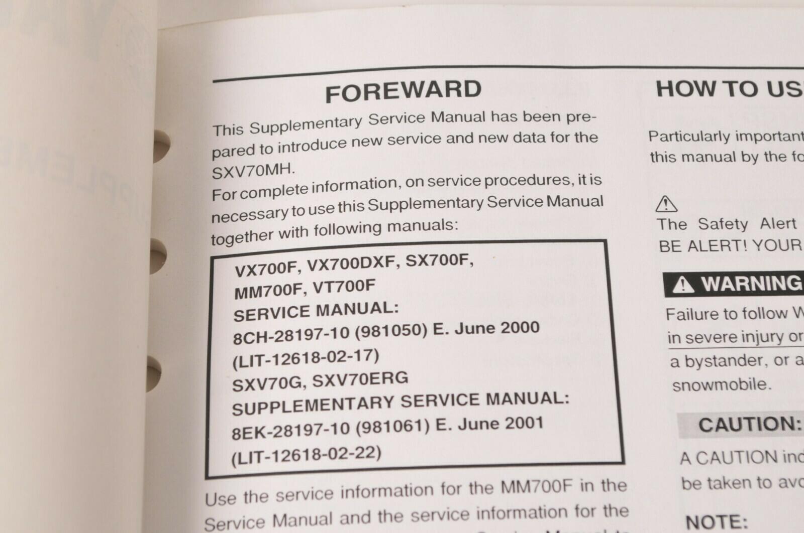 Yamaha Supplementary Service Manual Repair Maintenance Shop | SXV70MH 2003